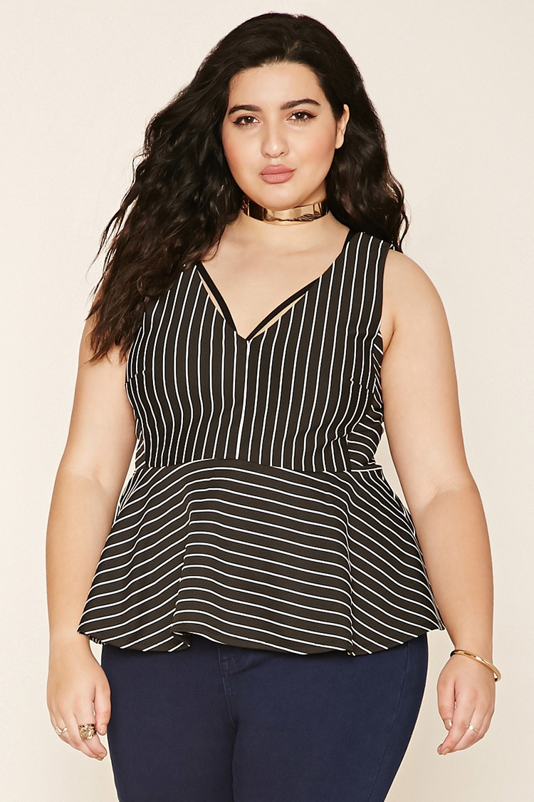 Forever 21 Plus Size Black White Pinstripe Peplum Top 2x Ebay